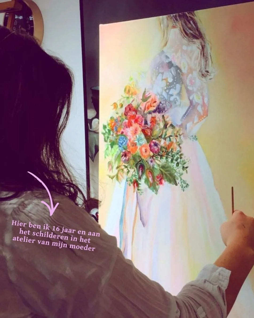 Ik ben opgegroeid in een huis waar kunst altijd aanwezig was. Mijn moeder is kunstenares en schildert met olieverf in haar atelier aan huis. Daar bracht ik als kind veel tijd door: tussen de verf, doeken en kwasten. Van haar heb ik leren schilderen en eigenlijk was ik altijd wel iets aan het maken.